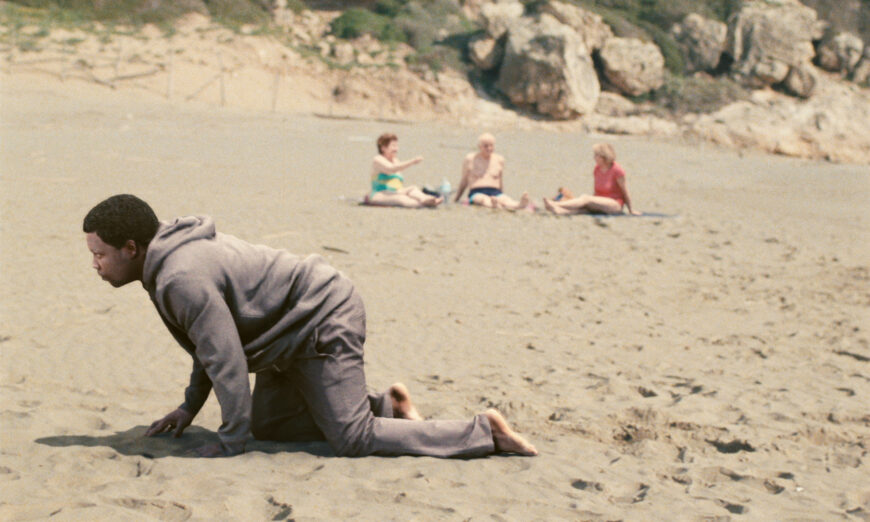 On a sun-drenched Mediterranean beach, time seems to stand still. Exhausted, a black man crawls away from the beach. No one around him seems to notice his presence. Freely based on a photo by Juan Medina, taken on a beach on…