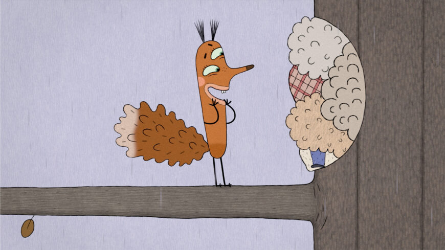 L'écureuil a calfeutré son nid pour l'hiver avec toute sorte d'objets volés. C'est alors qu'une crue éclate et les animaux de la forêt se réfugient dans la ferme de Lena. L'écureuil aimerait bien leur porter secours...